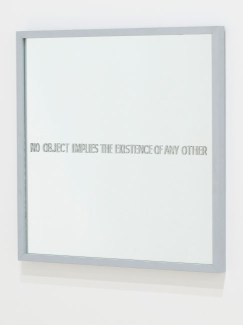 Ian Burn No object implies the existence of any other (Hume’s mirror) 1967. Mirror with synthetic polymer painted text, wood, 53 x 53 cm. State Art Collection, Art Gallery of Western Australia. Purchased 1988.