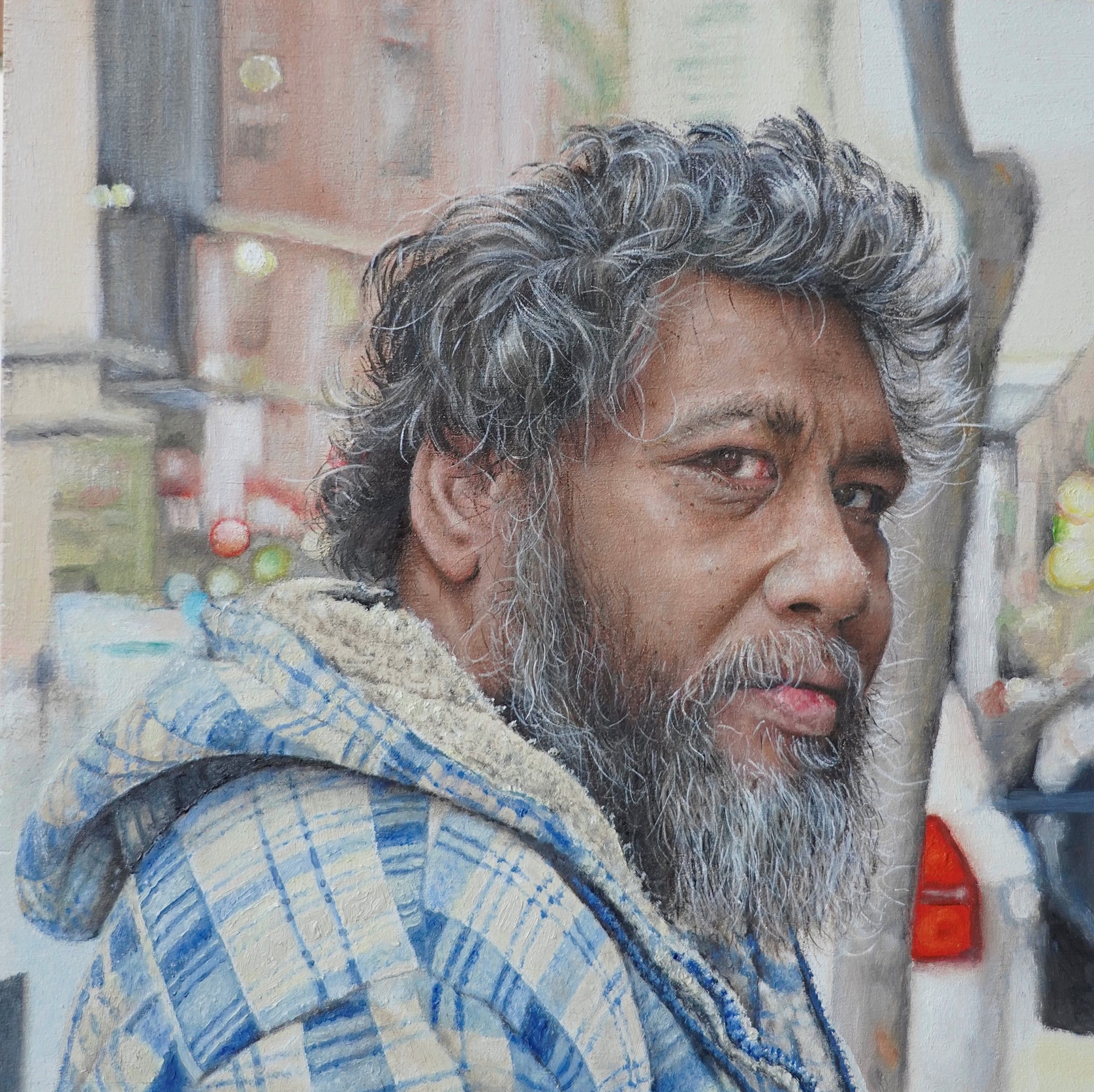 This work ‘Through you’ was the standout portrait. The use of scale and tight composition was supported by the pristine surface, focus of the artist and the subject’s character shines through. The rendering of the subject is incredibly sensitive and reveals the compassion of the artist towards the subject.